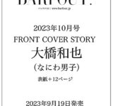 「BARFOUT! バァフアウト!10月号」表紙は大橋和也(なにわ男子)