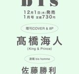 12/1発売「bis(ビス)1月号増刊」表紙はKing&Prince高橋海人